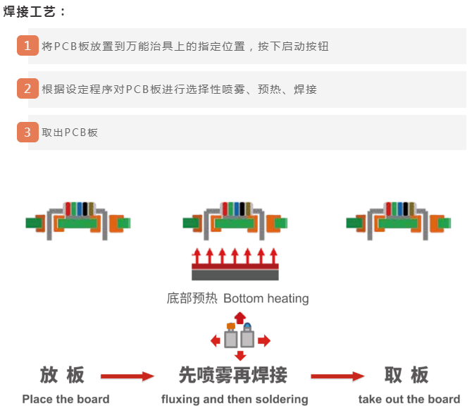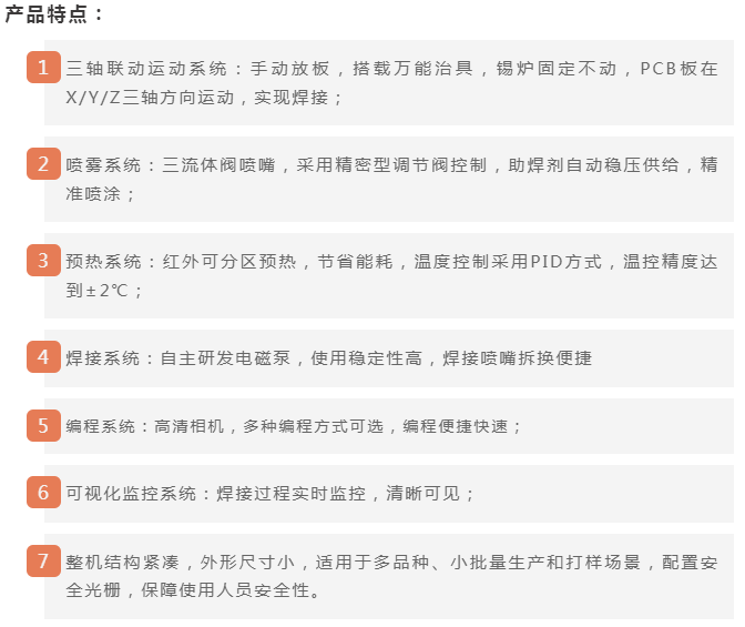 日东科技倾力打造的“离线式选择焊”全新上市,并在日东科技商城同步发售。这是一场智能设备的进化,根据事先编制的程序,三轴联动运动模块驱动PCB板在X/Y/Z三个方向运动,先后实现喷雾、预热、焊接的整个工艺过程。